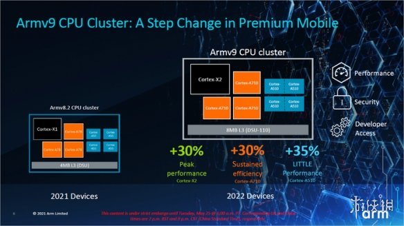 无论是Cortex-X2还是Cortex-A510,它们都有一个共同的特点,那就是不再支持32位,如果安卓机要运行32位的应用,那就必须在微架构只作了小幅调整的Cortex-A710中运行。如此一来,在某些场景中,就有可能导致额外的能耗。