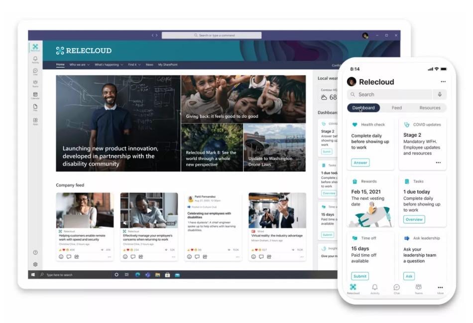 连接模块就是常规的内部通信,员工可以在该模块中与其他同事一起远程交流办公。它还包含一个仪表盘,上面显示公司新闻、联系人、社区内容等等。