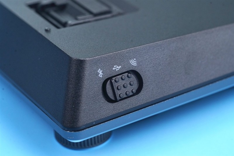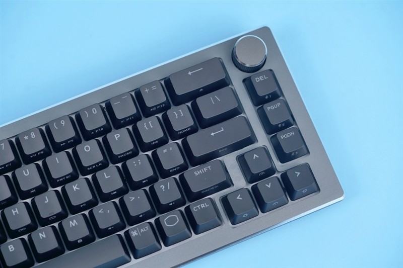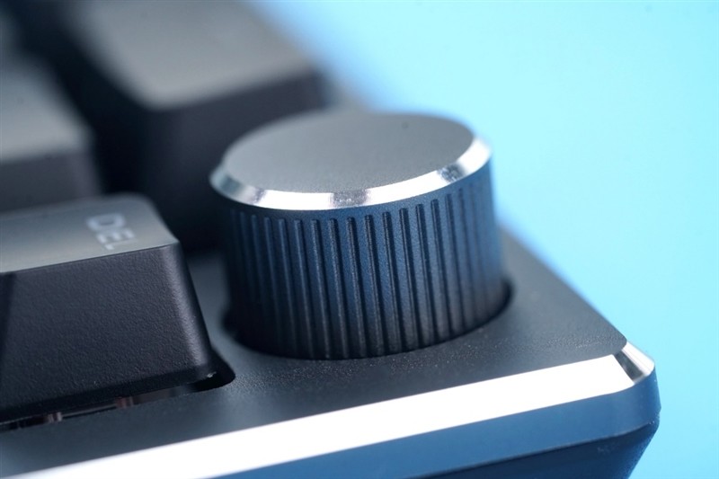 键盘右上角比较特色地加入了旋转按钮,可以轻按和旋转,默认旋转为音量调节,轻按为静音/正常模式切换。