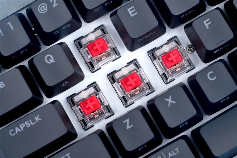 拆开键帽,露出轴体本身,使用的是TTC机械红轴,可带来更快的响应、更高的准确度、更舒适的触感。