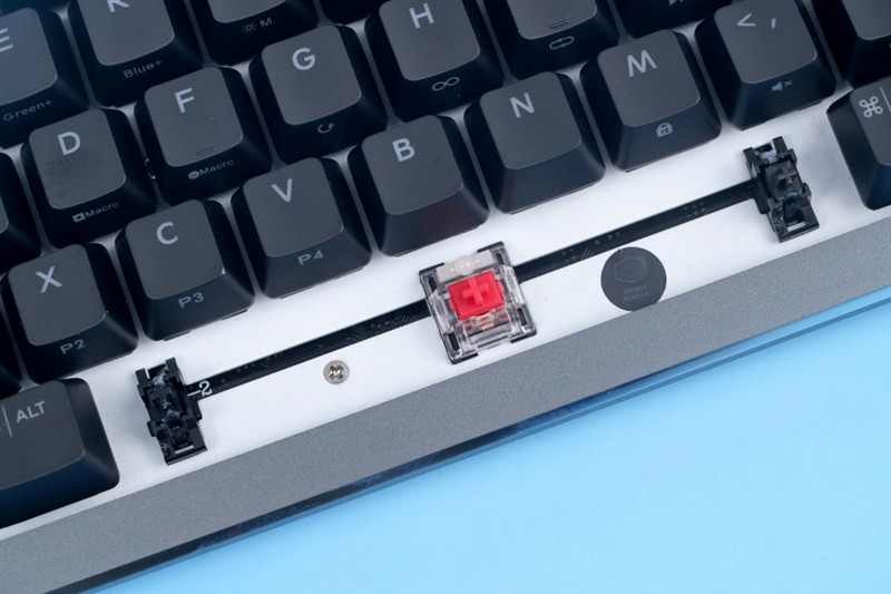 这款酷冷至尊轴刃CK271使用的是TTC机械红轴,总行程4mm、触发行程2mm、触发压力45gf,触发寿命约为5000万次。