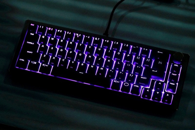 酷冷至尊轴刃721的RGB灯效支持1670万种颜色,内置了18种不同的灯效模式,用户也可通过FN+T组合件来进行切换。