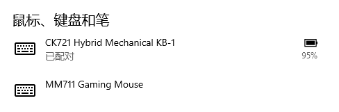 这款机械键盘还内置了2000mHa的电池,在充至95%、开启RGB的情况下,使用三个小时后待机到隔天剩余75%电量,照此推算每天使用三个小时可坚持四天左右。