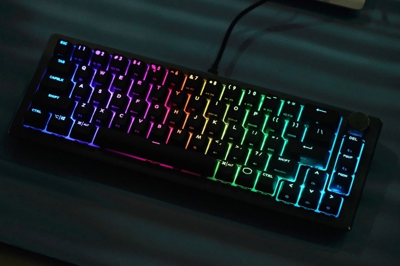酷冷至尊袖刃CK721的最大特色在于,采用了比87键布局更小巧的68键方案,小巧紧凑,方便携带,并且默认内置了多达18种RGB灯效,还在右上角安放了一个音量旋钮,可实现一键调节音量、灯光等功能。