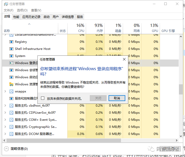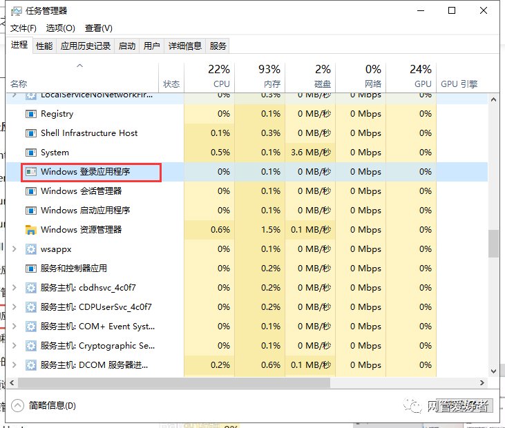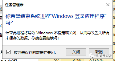 5、右键点击【Windows登录应用程序】,选择【结束任务】,如图所示。