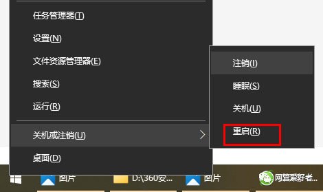 11、一直按住shift,然后点击当前登录接口右下角的电源键,选择重启,