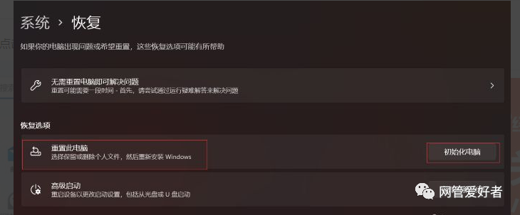 Windows11怎么恢复出厂设置;点击重置此电脑选择“初始化电脑”即可。