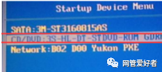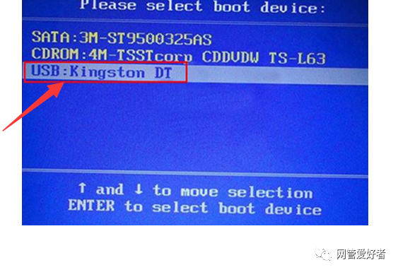 2、选择U盘选项后回车进入下一步,注意:通常带有“USB”字样的选项即为U盘选项