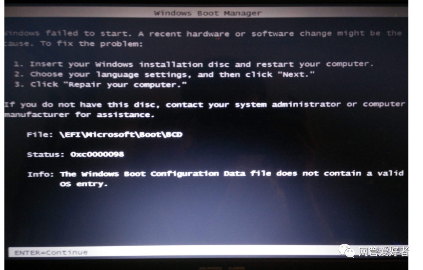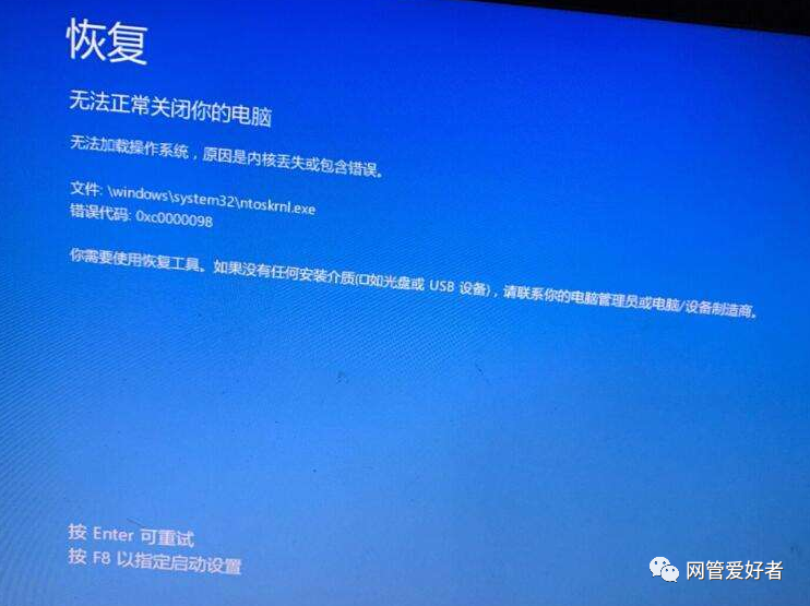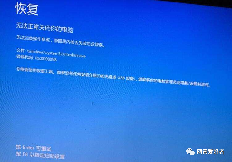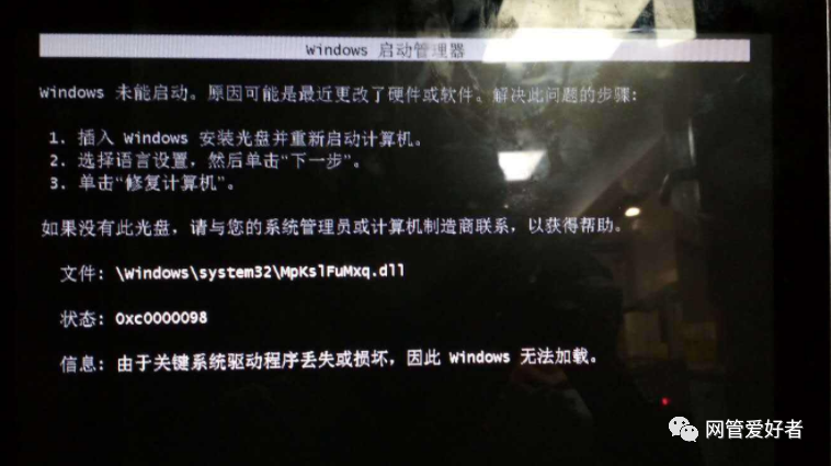 信息:由于关键系统驱动程序丢失成损坏,因此windows无法加载