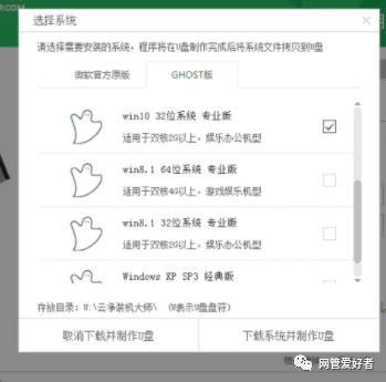 4.选择自己需要的系统(如果自己有准备系统,可以点击取消下载并制作U盘),点击下载系统并制作U盘。