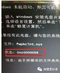 Windows开机报0xc0000098代码错误故障处理