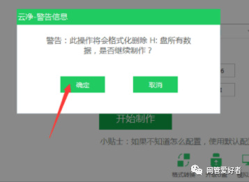 3.确认U盘中数据都是已经不需要了的,点击确定。