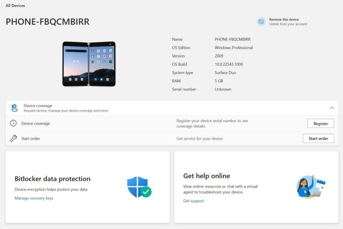 多值一提的是,在开发者展示的微软账户设备列表中,这台搭载了Win11系统的Surface Duo居然也赫然在列,并且在系统一栏也能够正确地显示为Windows。实际上,在此之前这款双屏手机研发的目的就是搭载Windows 10X系统,因此在发布之前应当也做过不少测试,如此一来系统一项能够正确识别似乎也合情合理。