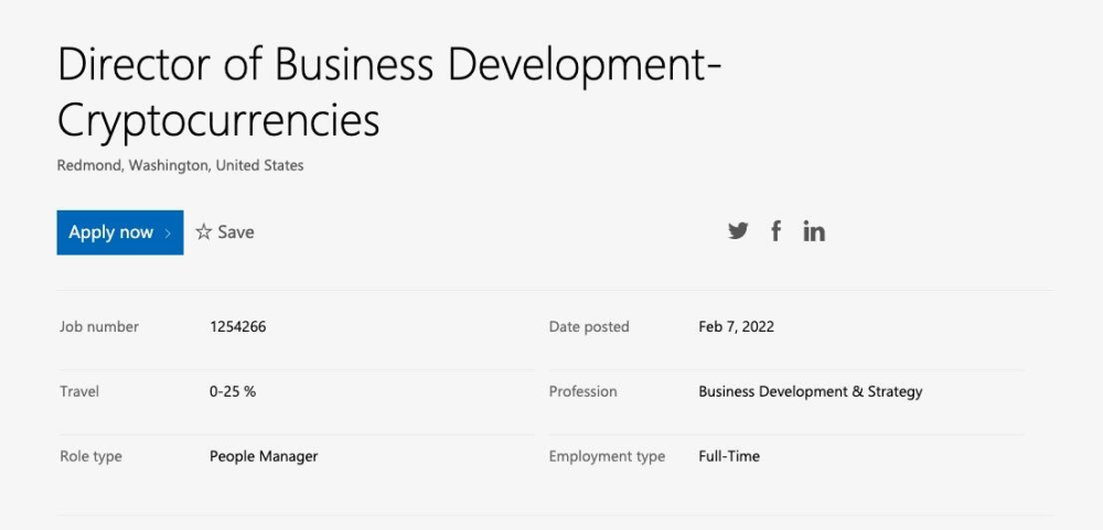布局Web 3.0?微软招聘数字货币主管
