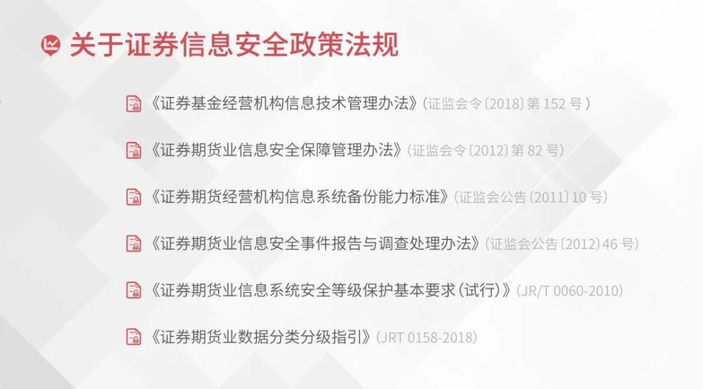 信息安全是证券业的监管重点,近年来,证券行业有着日益严格的政策法规约束,无形中增加了企业的合规难度和成本。