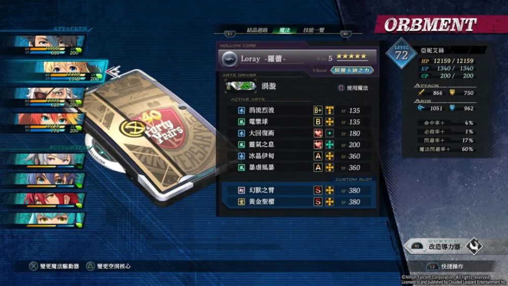 系列经典的导力器系统也在本作得到了大幅更新,沿用了多作的核心回路系统遭到了拆解,取而代之的则是新的“空洞核心”与“魔法核心”,空洞核心顾名思义是新导力器塞法的核心所在,不同的空洞核心会提供不同的增幅状态中的属性加成,增幅状态需要消耗类似前作勇气指数的增幅指数,值得一提的是,本作的S技能只有在进入了增幅状态时才能使用,何时使用增幅指数更加考验玩家的策略了。