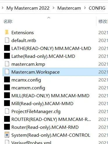 打开后找到CONFIG文件夹,在CONFIG文件夹里面的Mastercam.Workspace 文件就是快捷键文件啦!我们只需要将他复制替换到新版本的软件对应位置就可以完成对快捷键的迁移!大家赶紧去试试吧! 大家觉得对自己有帮助的话,可以帮忙转发下