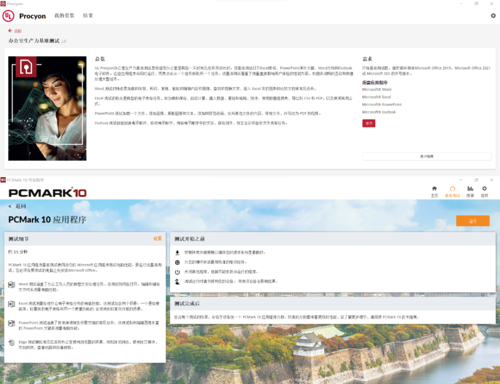 UL Procyon办公室生产力基准测试和PCMark 10应用程序测试。