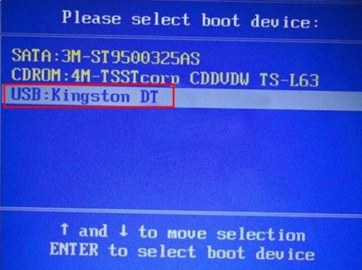 3、重启电脑,在启动的过程中连续按u盘启动快捷键(根据电脑品牌和型号到百度查询),进入启动项设置菜单,选择U盘选项回车进入winpe桌面;