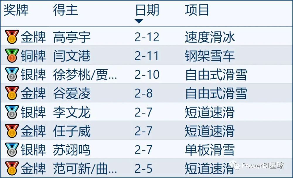 这里的列标题是直接用文字显示的金银铜牌,如果能直接用金牌、银牌、铜牌的图标来显示,是不是更直观呢?
