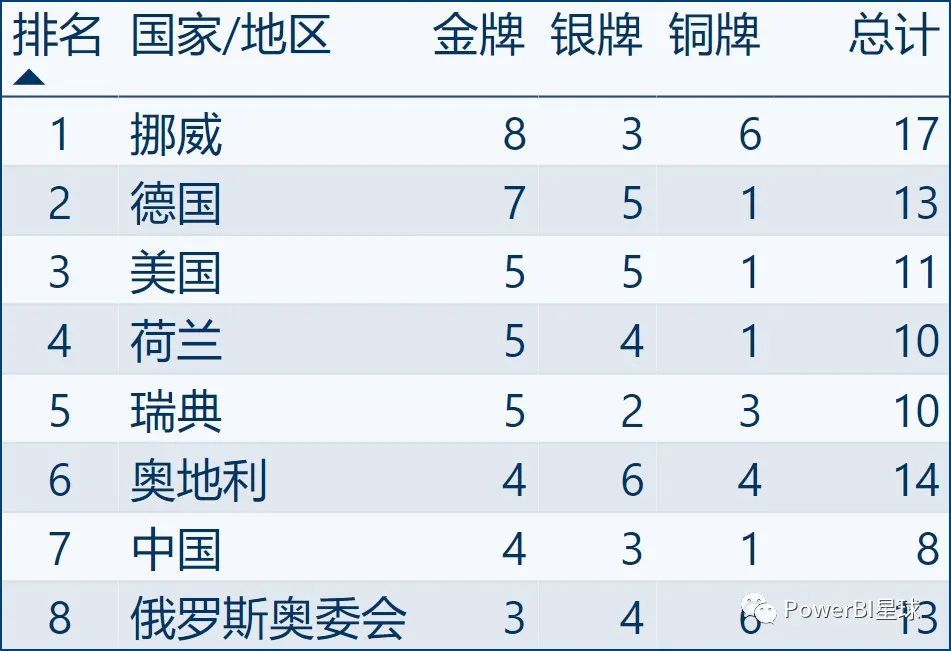 以冬奥会的奖牌榜为例,利用表格可以简单生成这样的榜单: