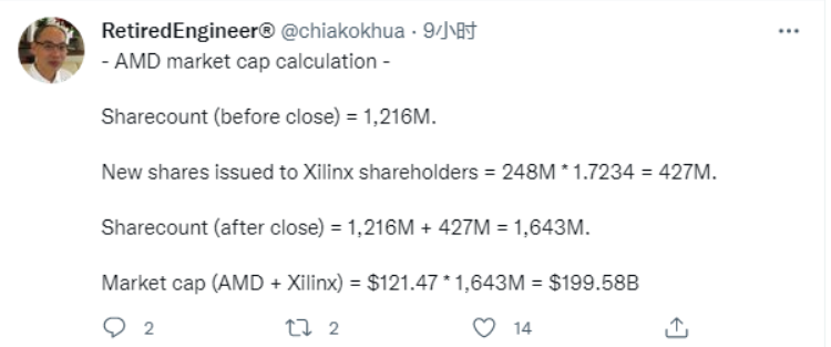 2月16日消息,Twitter博主@RetiredEngineer 推算,AMD在成功收购赛灵思之后,它的市值首次超越英特尔。