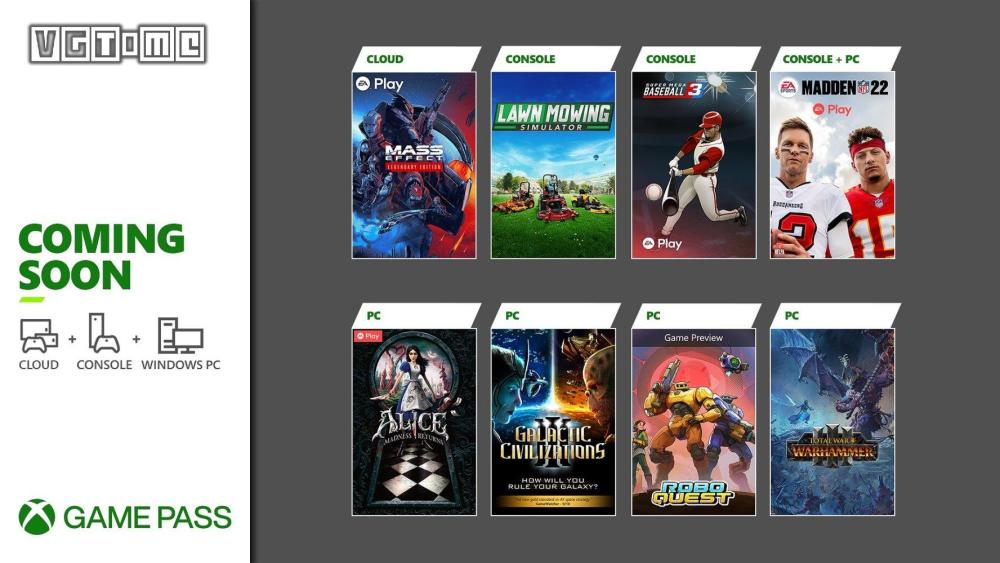 微软在公布了 Xbox Game Pass 2022 年 2 月下旬新入库游戏,包含《质量效应 传奇版》《割草模拟器》《全面战争:战锤3》《爱丽丝 疯狂回归》等,共 8 款游戏。