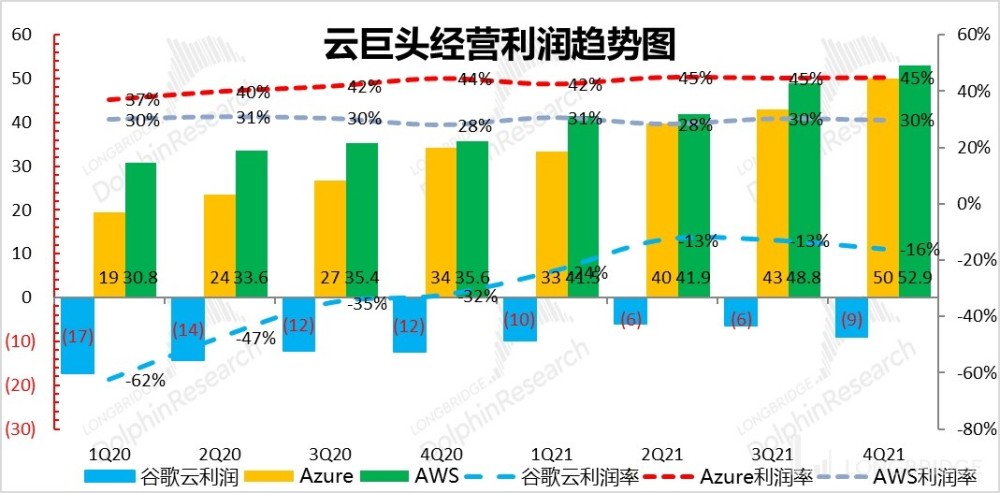 同时在经营利润上,除了谷歌云之外,考虑到亚马逊再次拉长了服务器的折旧年限,Azure 事实上表现更好。