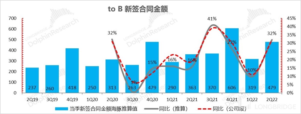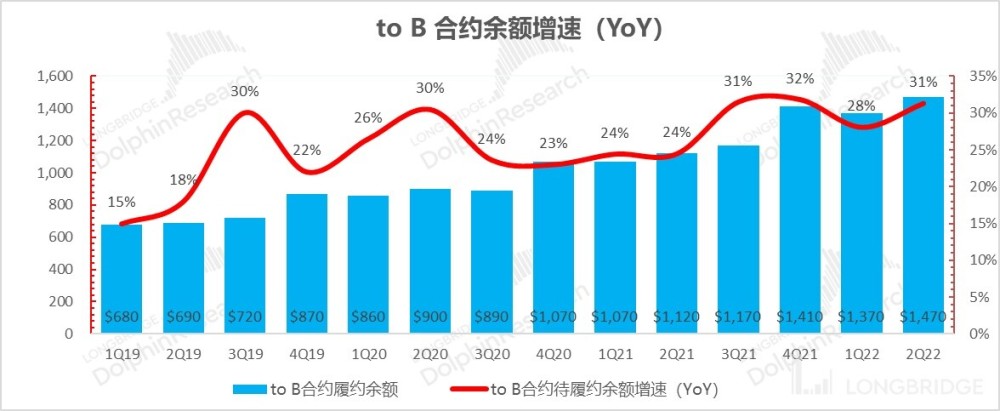 当季 to B 合约余额在绝对值上创新高,同时同比增速再次恢复;