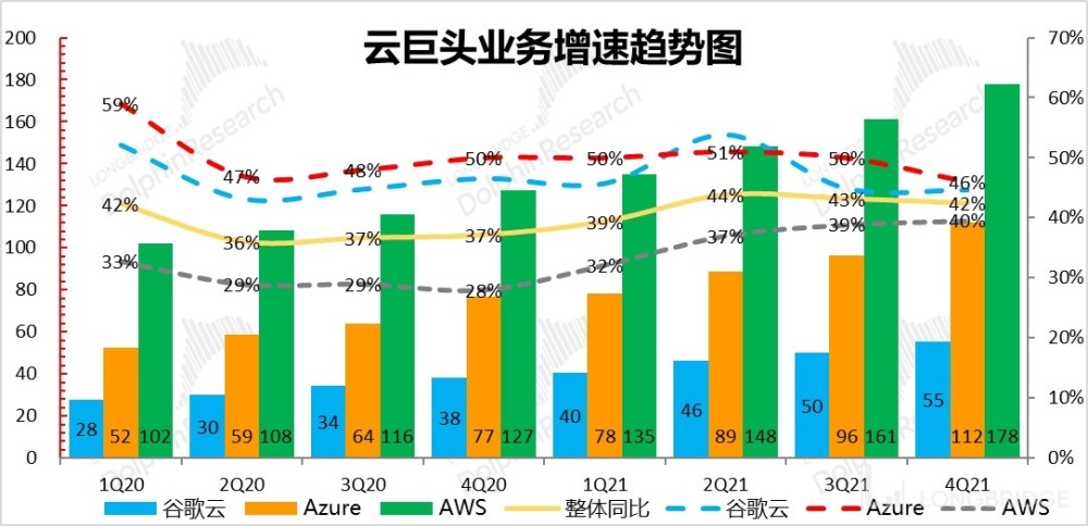 亚马逊、谷歌增长小幅继续小幅提速,Azure 虽然小又放缓但在去年相对较高的基数之上保持在了 46% 的同比增长,行业景气度显然持续较高。