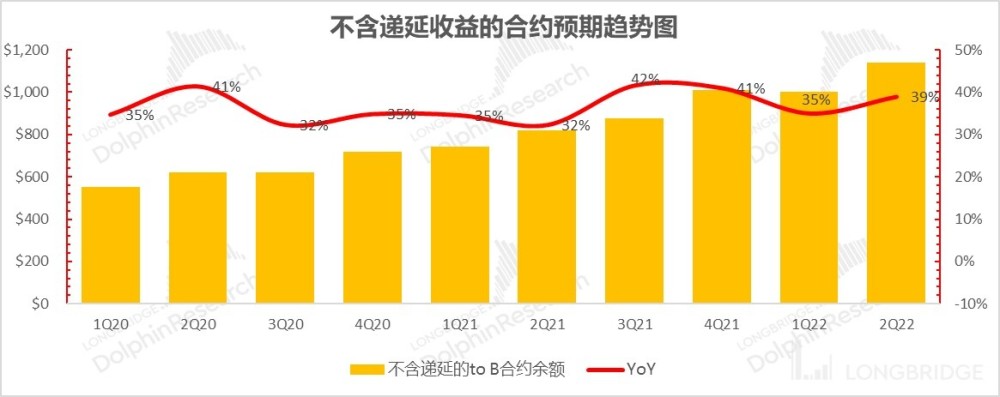 而不含递延收入的合约余额中(可以粗暴理解为 Azure 基于实际使用量的合同余额)增速其实更高。