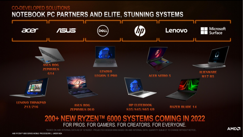 以上就是 AMD 锐龙 6000 系列移动处理器的一些升级的解析了,相信大家已经摩拳擦掌了。据悉华硕、宏、联想、惠普、戴尔等 OEM 厂商将陆续发布搭载新款锐龙的轻薄本、全能本和游戏本。其中华硕已经率先发布搭载锐龙 7 6800HS + Radeon RX 6700S 的新款 ROG 幻 14。