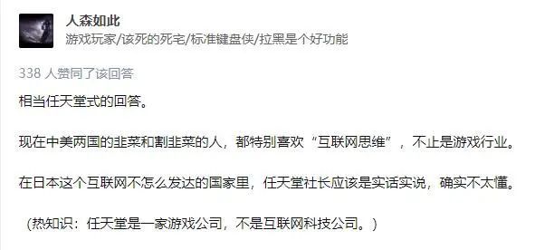 从知乎网友的留言来看,赞同古川俊太郎的言论偏多,而反对党则称任天堂此番言论太过保守。但有趣的是,讨论到最后网友们纷纷把焦点放在了“社长究竟是真不懂,还是假不懂”上,再次拿西瓜头的古川俊太郎戏谑一番。