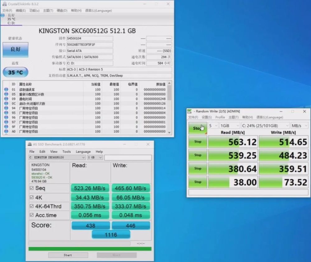 KC600 使用了 96 层堆叠的 3D TLC,镁光原厂颗粒的表现还是相当不错的,应付日常办公和学习的使用强度不成问题。作为最能模拟实际使用环境 PC Mark,笔者这里由于时间问题并没有来得及测试,但根据网上其他使用者的测试发现,这款整体性能是可以直接和 860EVO 对标的。