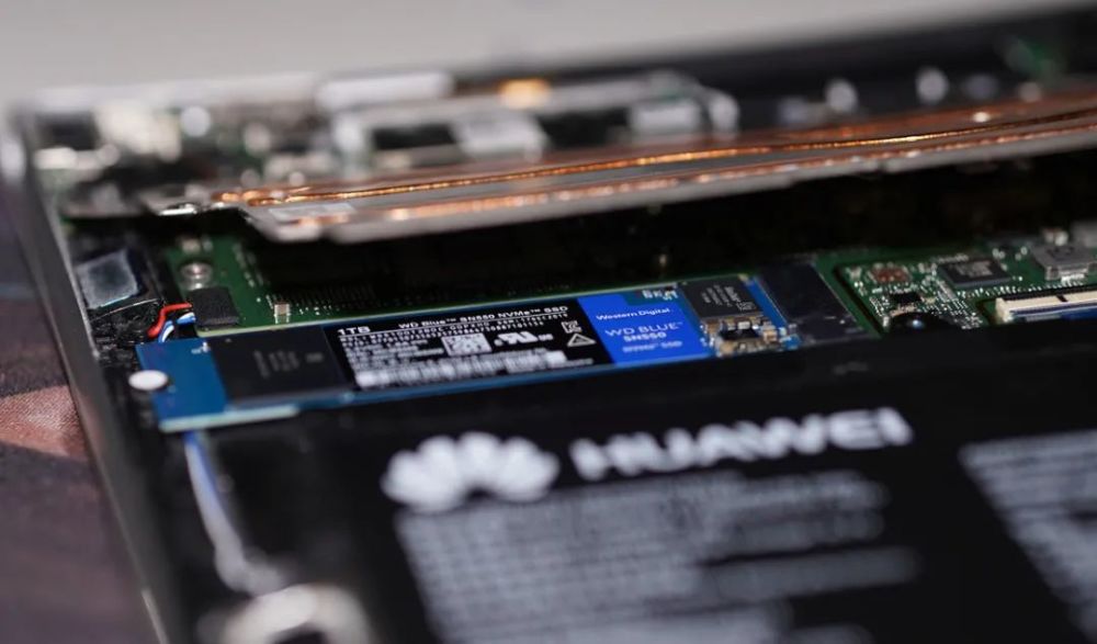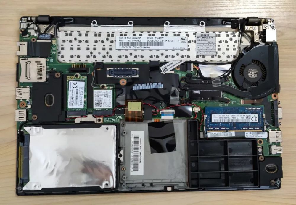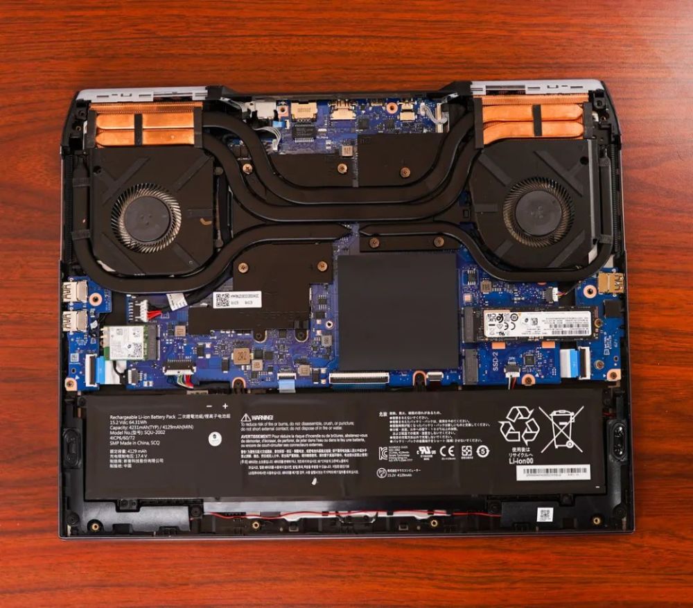 中间下部为笔记本内存插槽与均热板覆盖的 NMVE 固态硬盘