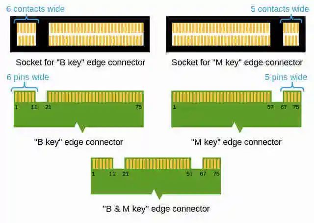 M.2 接口固态硬盘主要优势在于体积相比传统的 SATA3.0、mSATA 更小,并且读取速度更快,对于一些移动设备兼容性更好。按硬盘的接口分为 M key 接口和 B&M key 接口,按插槽分为 SOCKET 2(B key 插槽)与 SOCKET3(M key 插槽)。