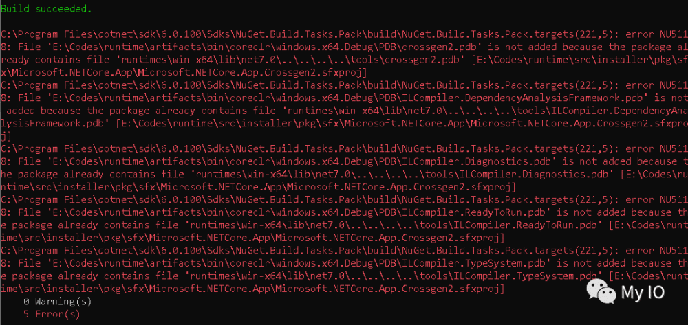 最后提示的几个是 Nuget 打包的错误,对编译无影响,因此没有处理。