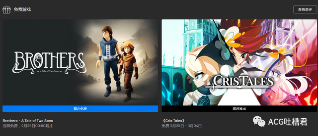 值得一提的是epic平台本周喜加一,《兄弟:双子传说》(Brothers: A Tale of Two Sons)可以在2月25日零点之前领取,感兴趣的朋友千万不要错过了此游戏佳作,下周epic平台依旧喜加一,《水晶传说》(Cris Tales)可以在2月25日至3月4日之间领取。