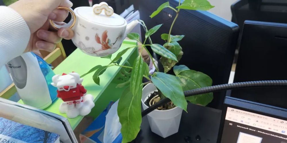 9:50-10:00,刚准备开始科研,发现兄弟们桌子上的绿植也快撑不住了。大家的绿植都是我上学期送的,还是照顾一下吧。于是给大家的绿植都浇了一波水。