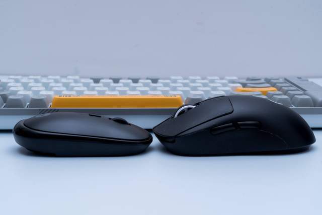 说实话,向日葵智能远控蓝牙鼠标这个体积尺寸是真的非常小巧了,我将向日葵智能远控蓝牙鼠标和罗技Pro X Superlight放在一起对比,可以明显看到前者的体积是要比后者小得多,这也符合向日葵智能远控蓝牙鼠标便携办公的定位了。