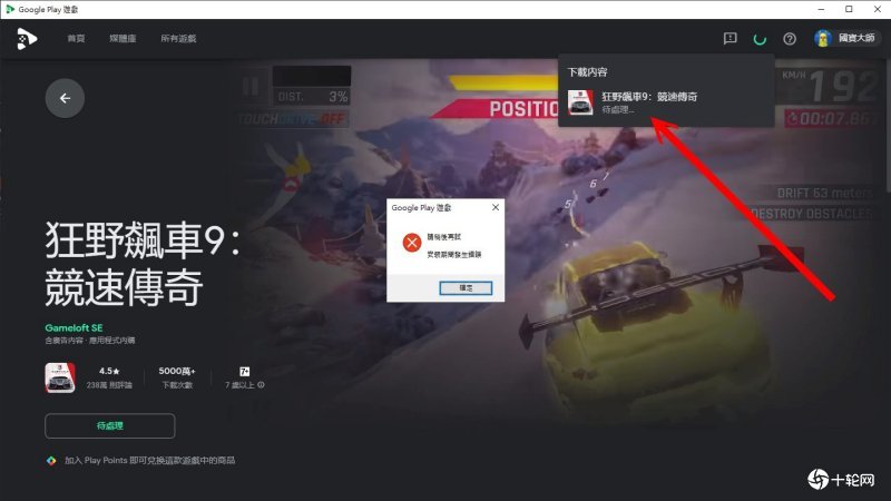 接下来笔者在执行《狂野飙车9:竞速传奇》时,遇到启动后游戏要求更新,但Google Play游戏显示已为最新版,导致无法完成更新,于是游戏就卡在提示更新的画面,而无法正常执行。