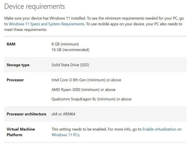 微软的 FAQ 网站上列出支持 Android Beta 测试版的近五个主要要求,用户的设备必须满足这些要求,才能正常运行 Android 应用。