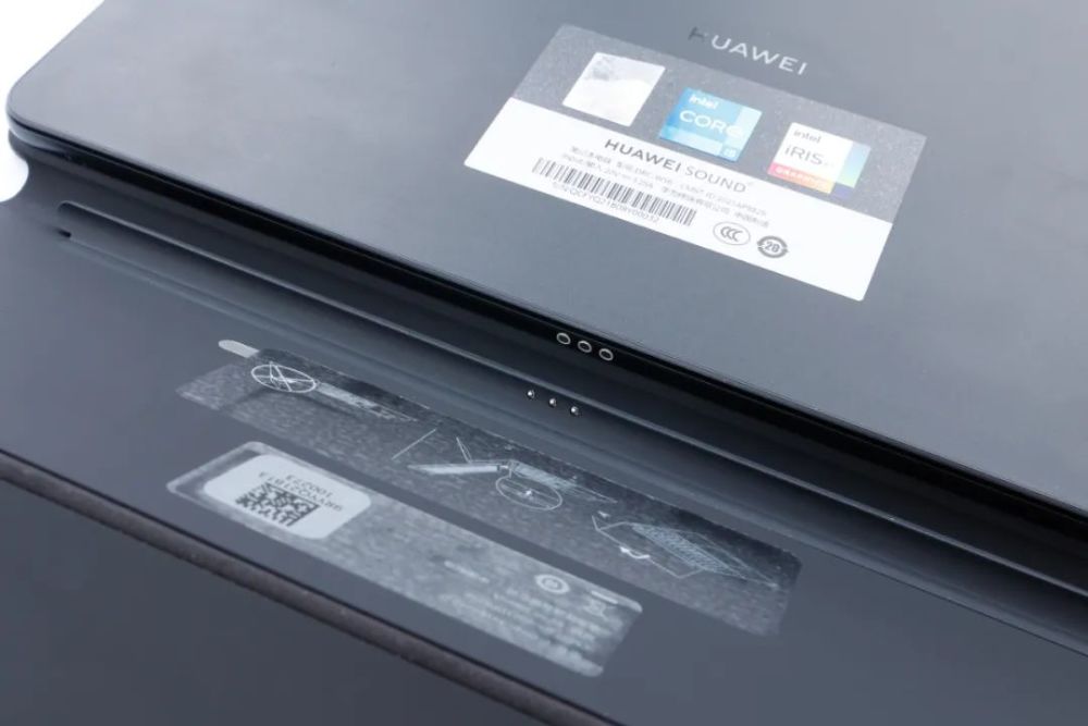 华为MateBook E的机身正面是一整块12.6英寸屏幕,800万前置摄像头被隐藏在黑色边框内,正面没有任何实体按键。华为MateBook E背面采用黑色类肤材质涂层覆盖,在背面右上角是一枚1600万像素的突起式摄像头和闪光灯模组,背面正中央则是简约的HUAWEI的LOGO,以及一排认证标志,分别是代表本机安装有Windows 11、英特尔第11代酷睿i5处理器以及英特尔Iris Xe独立显卡。并且在背面下方还标注了产品型号、充电规格及S/N码等型号信息。除开形态上和平板产品相似,华为MateBook E也将自身的轻薄小巧做到了近乎极致――裸机机身尺寸为286.5mm×184.7mm×7.99mm,重量仅709g。实际体验下来,男生在短时间内单手持握,是不会感觉到吃力的。当然如果长时间保持平板形态,我们还是建议采用常规的双手持握的方式来使用。