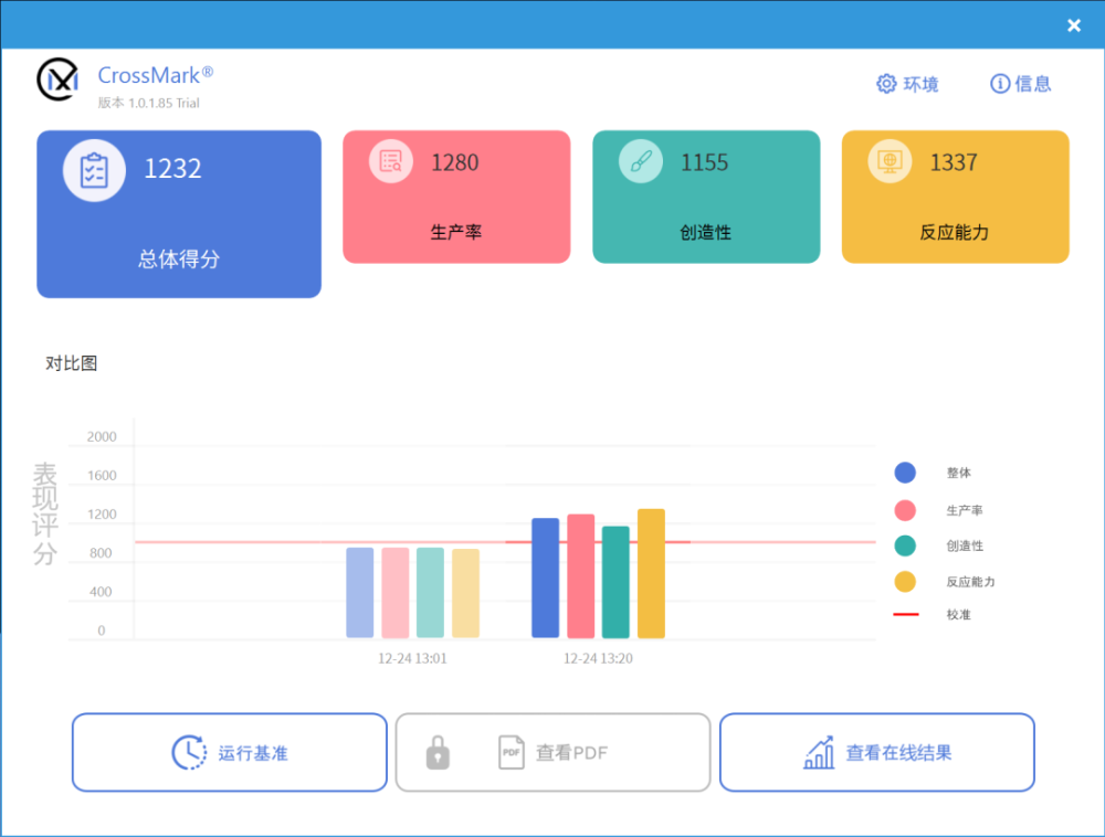 而在同样体现CPU性能的Performance Test测试中,酷睿i5-1130G7的CPU Mark总分为10634。而在模拟综合性能的PCMark 10测试中,华为MateBook E的总体得分为4287,其中常用基本功能得分8581,生产力得分为5788,数位内容创作得分4287。目前CrossMark测试是为数不多可以在X86平台和MacOS平台同时运行的,可以模拟不同平台CPU性能的综合测试软件。因此我们也加入了这款产品与苹果MacBook Air M1的CrossMark对比测试。测试结果显示华为MateBook E的CrossMark总体得分为1232,苹果MacBook Air M1的CrossMark总体得分为1325,两款机型的总分差距不大,在生产力和反应能力两项测试中,华为MateBook E均保持领先,但是更考验多核性能的创造性测试,也就是体现多核性能的渲染测试中,华为MateBook E得分要弱不少。