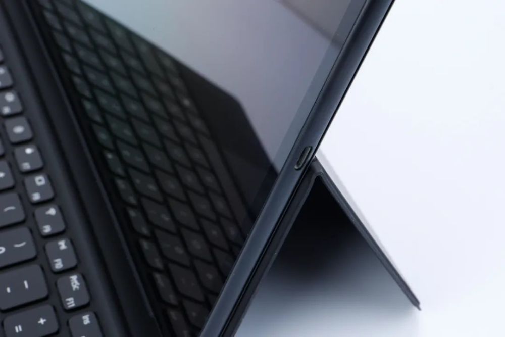 首先从形态上,华为MateBook E和华为MatePad平板让人很难一眼区分。这和华为MateBook E采用了与平板相同的屏幕窄边框,以及打磨圆润的边角脱不开关系。同时华为MateBook E机身也采用了和平板相似的简洁化设计风格,机身四周的功能接口及按键都尽量简化――顶部有一个音量调节键,底部则是连接键盘的磁吸式接口,除此之外在左右两侧仅分布有一个开关键和一个雷电4接口。机身的风扇出风口则采用了隐藏式设计,不仔细看就很难发现。