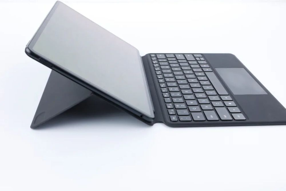 华为MateBook E默认搭载的是华为智能磁吸键盘,这款键盘的配色可根据机身颜色进行选择,采用具有弹力的亲肤PU材料,支持110°~160°的角度变换,角度调节可以通过单手完成。键盘的整体重量约为440g,接入后在保证便携性的同时,也可以为华为MateBook E提供屏幕保护。这款智能磁吸键盘咋兼顾轻薄的同时,提供了1.3mm键程,打字体验虽然优于普通薄膜键盘,但手感依旧偏粘腻,并且不支持背光。相比同类型产品,这款磁吸键盘的触控板手感更加舒适,具备了56mm×113mm的大尺寸,而且在触控板下方集成了NFC功能,华为手机贴合触碰,就可以开启智慧协同功能。