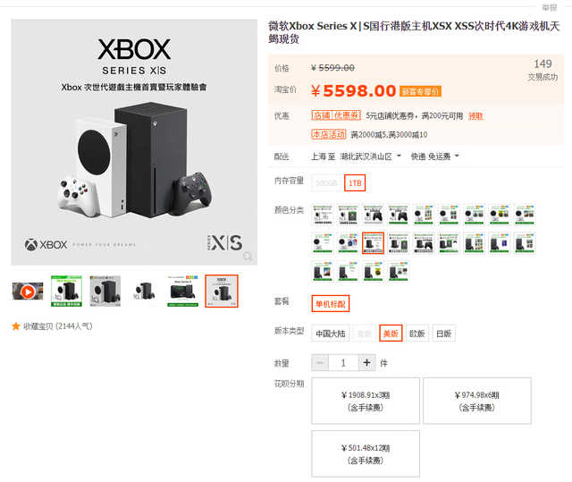 来看看这周XSX行情,根据微软XSX主机某宝今天的现货价格,其中XSX国行今日行情5469元,XSX日版今日行情4999元,XSX美版今日行情5583元,XSX欧版今日行情价格为5383元,对比上周五行情价格,XSX国行上涨70元,XSX日版下降84元,XSX美版和欧版保持不变。