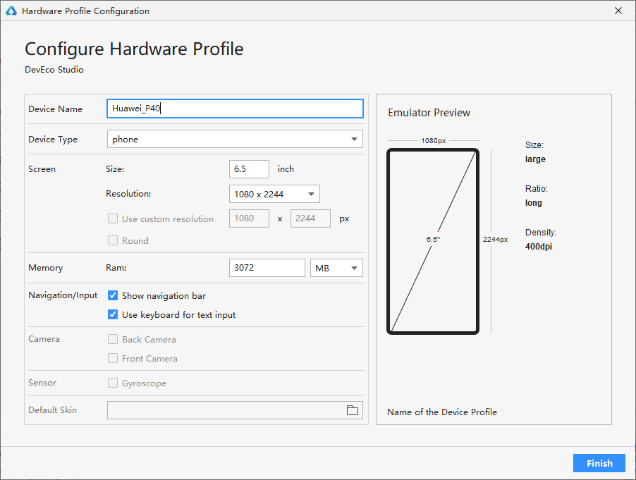 开发者点击 New Hardware 或 Huawei_Phone 后的克隆图标,可以创建新的手机设备,自定义设备的名称、尺寸、分辨率、内存等参数(如图 7)。