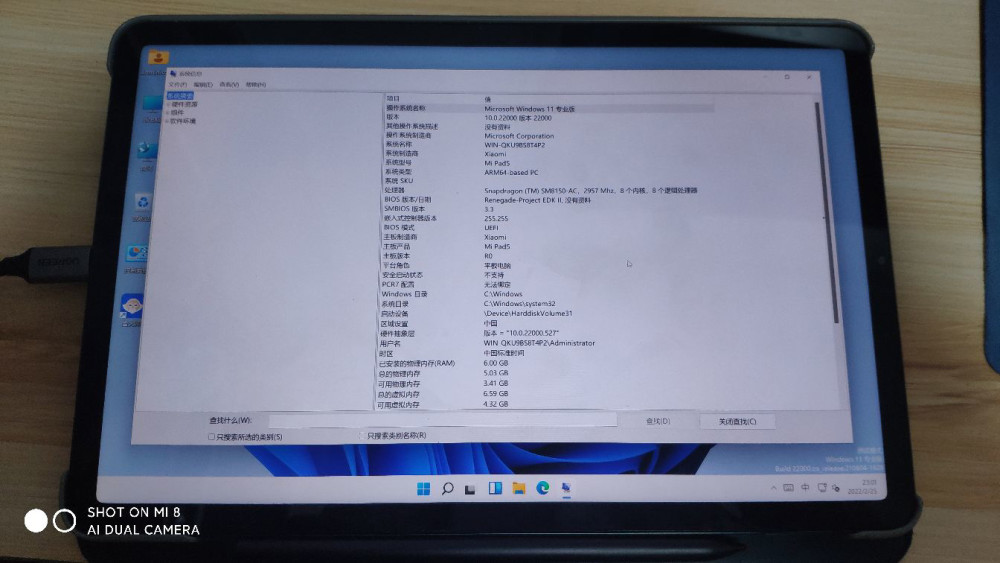 IT之家 2 月 26 日消息,去年 8 月份,小米发布了小米平板 5 和小米平板 5 Pro,其中前者搭载了骁龙 860,后者搭载了骁龙 870 处理器。此前小米平板 5 已经成功运行了 Windows 11 ARM 系统,当然也支持运行 Windows 10 ARM。小米平板 5 运行 Windows 11 系统在 2K 分辨率下较为流畅。开放者利用了此前的 Woa 项目,采用了骁龙 855 (SM8150) 的一些驱动程序,还在研究骁龙 720G 的一些东西,包括蓝牙和 PEP 等。