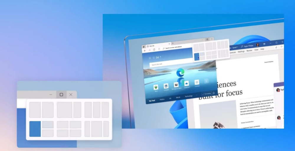 更新中,Win11加入了专门针对平板优化的任务栏,这是将电脑当作平板来使用的情境,微软引入了全新的任务栏状态,让你感觉更加自信和舒适。当你分拆键盘或者在二合一设备上切换到平板模式,那么现在任务栏就会自动过渡到这个优化版本。这项功能只适用于可作为平板电脑使用的设备。它在笔记本电脑或台式电脑上不起作用。